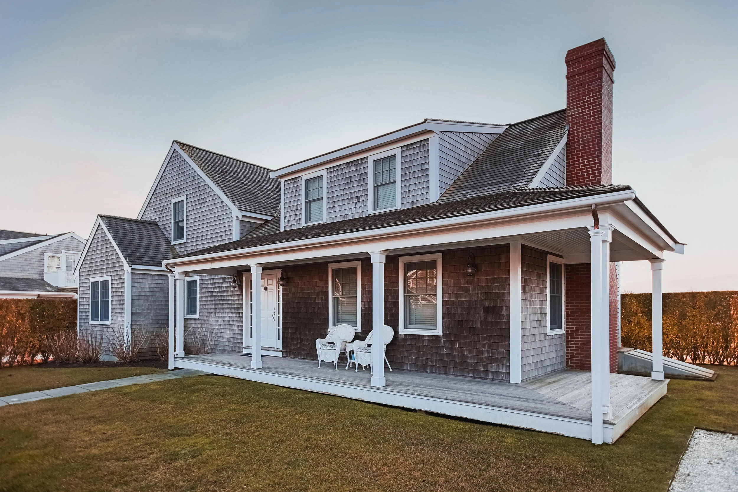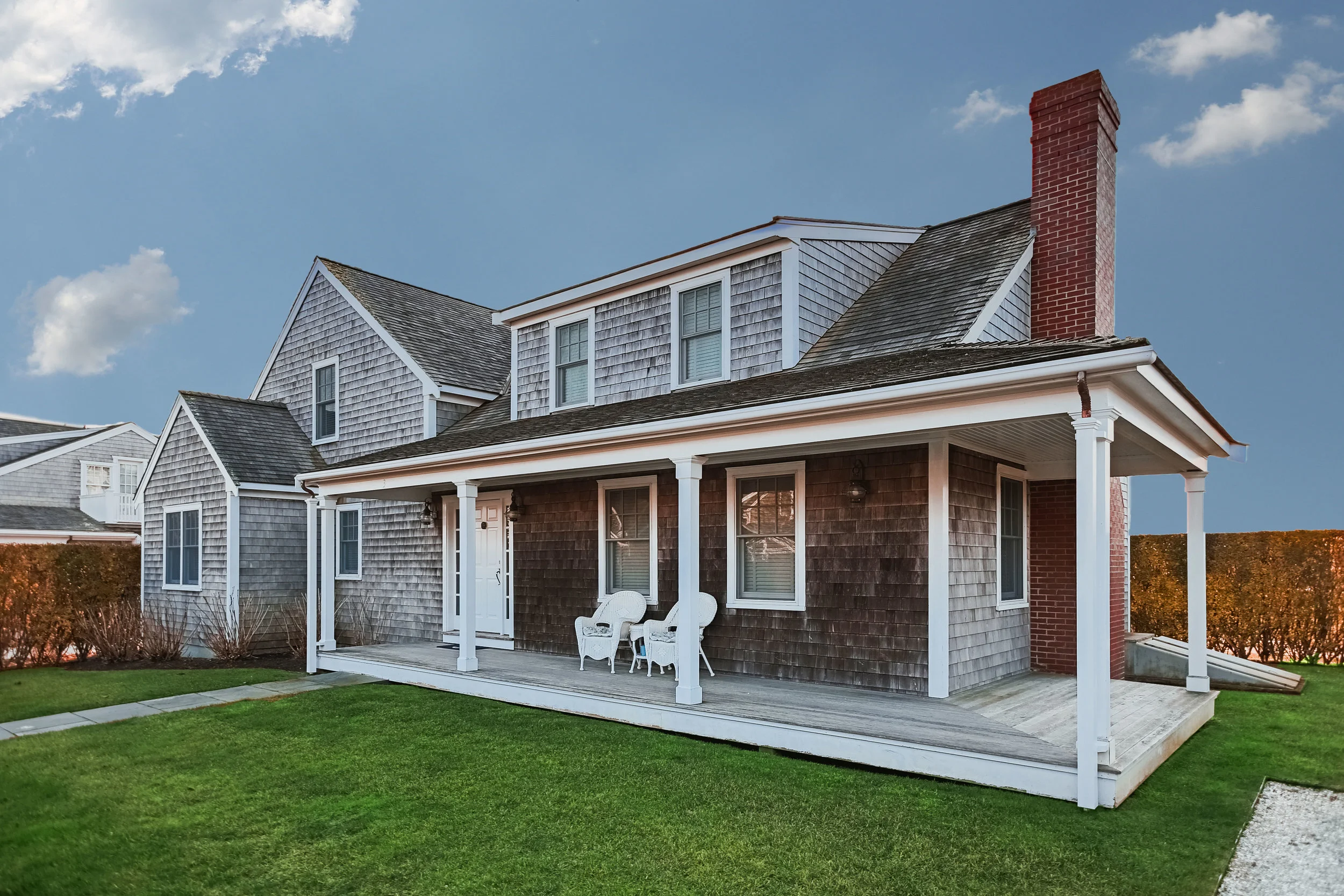 Beautiful traditional Nantucket ocean home. Only problem? Dead grass & overcast.