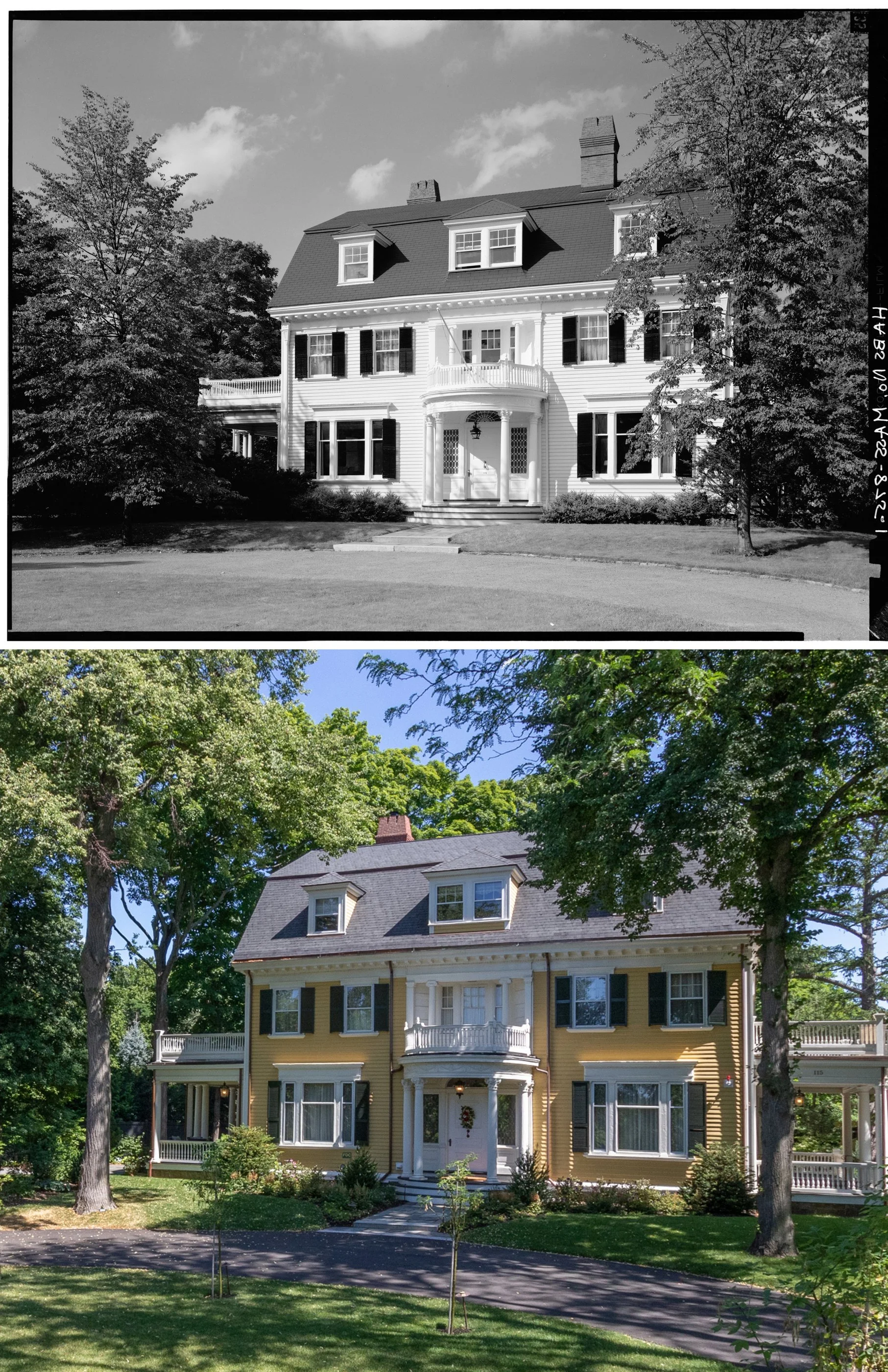 One of the earliest, largest, and best Colonial Revival-style houses in Boston. Family ties with the Longfellow House (1759) two doors away underline the conscious return of Colonial Revival architects to eighteenth-century molds.